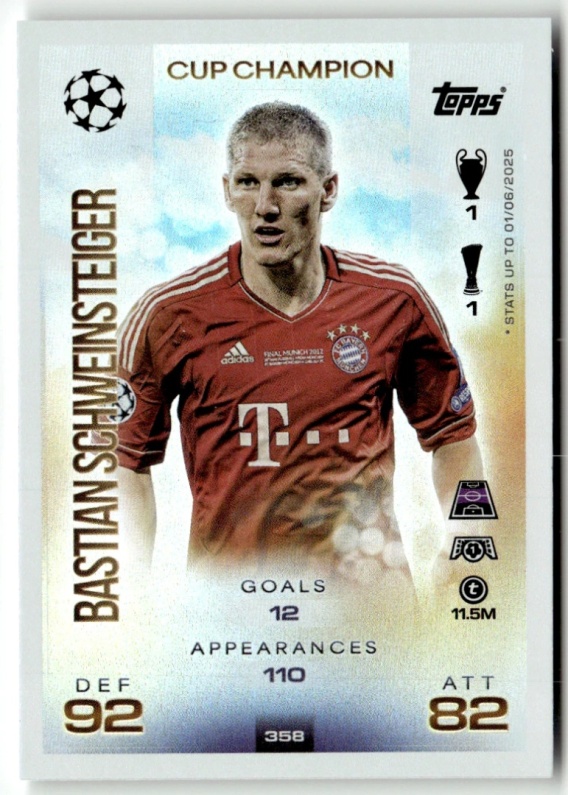 358 Bastian Schweinsteiger FC Bayern Cup Champion Match Attax 2025/26