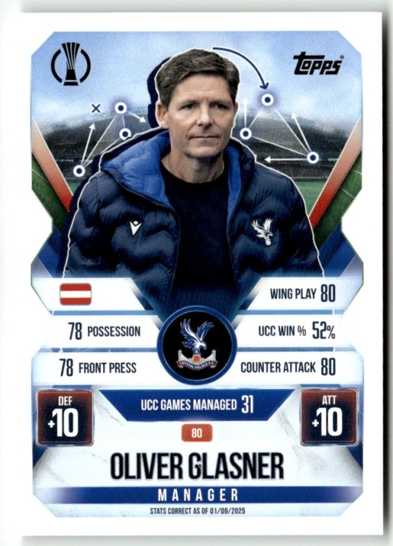 80 Oliver Glasner Crystal Palace Manager Match Attax Extra 2025/26